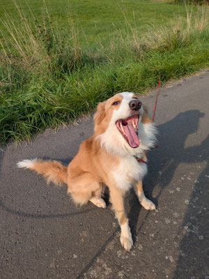 kennt und befolgt die gängigen Grundkommandos, Rückruf und Stopp funktionieren hervorragend